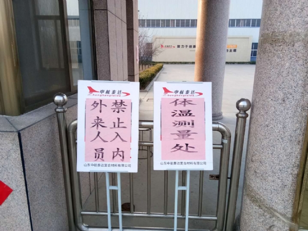 2020-2-192020年2月18日,山东中航泰达复工后,为做好疫情防控工作,我公司防控小组成员进行对公司员工进行排查工作:一是要求员工做好回城登记,加强人员管理,建立全员健康管理台账,重点摸排现居湖北等地区、14天内有过病例接触史、14天内有过湖北或其他有本地病例持续传播地区的旅居史、14天内与湖北等地区人员有接触史等四类重点人群,依情况安排返工;二是要求对上岗人员防疫工作,配备个人卫生防护用品,每日对工作场所进行消毒,员工上下班进行体温检测;三是要求做好应急管理,公司制定了务实可行的复工方案和有效的应急预案。